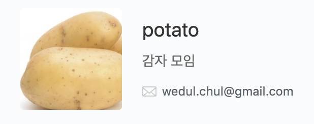 그룹 이름은 우리의 아이덴티티에 맞는 potato로 지정했다. ㅋㅋ