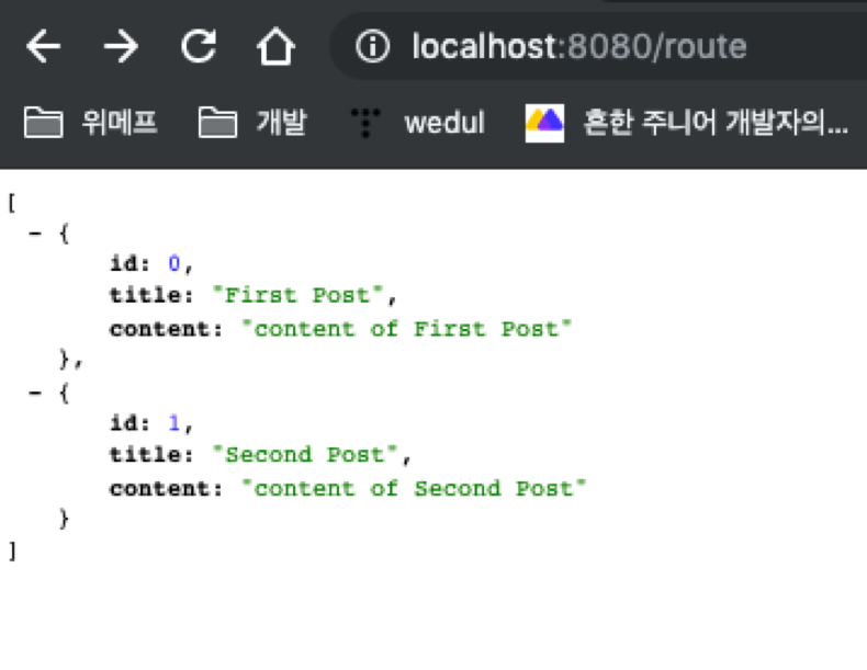 그리고 RouterFunction을 정의하자 하나의 route를 정의하여 엔드포인트를 지정할 수 있고 추가적으로 andRoute를 통해 연속적으로 지정할수도 있다.