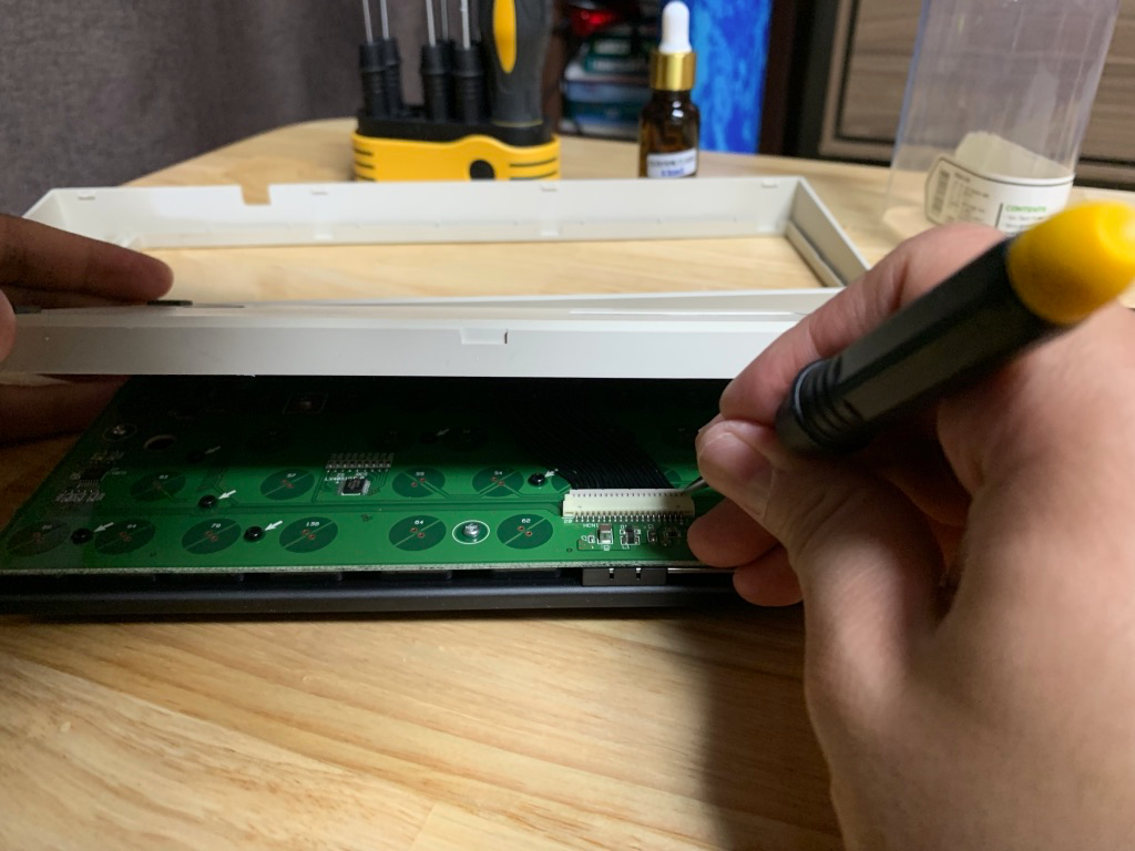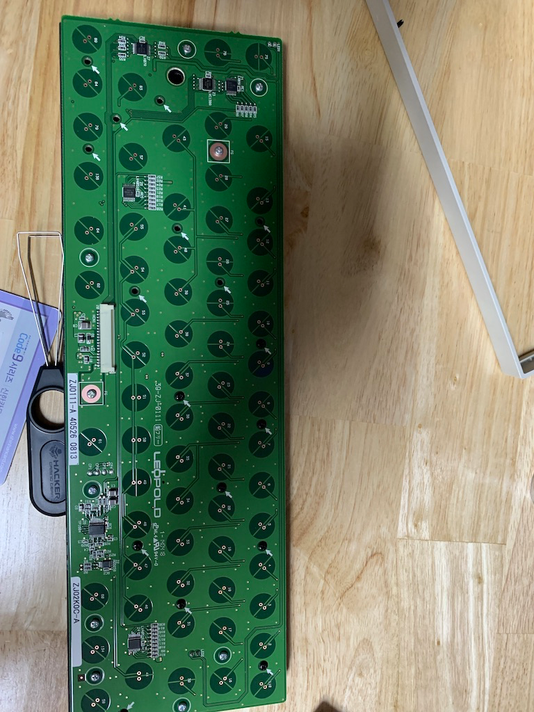 각 나사들을 모두 제거하고 기판을 들어올리면 러버덕과 합쳐있는 기판이 분리된다. 이쪽에서 나는 러버덕을 건드리지 않기로 했다.