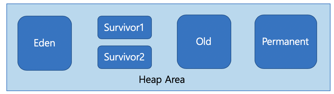 permenent 영역에 로드된 클래스의 메타 정보와 static한 변수들 정보들이 담겨져 있는데 그 중 static 영역과 상수 영역은 heap으로 옮겨졌다.