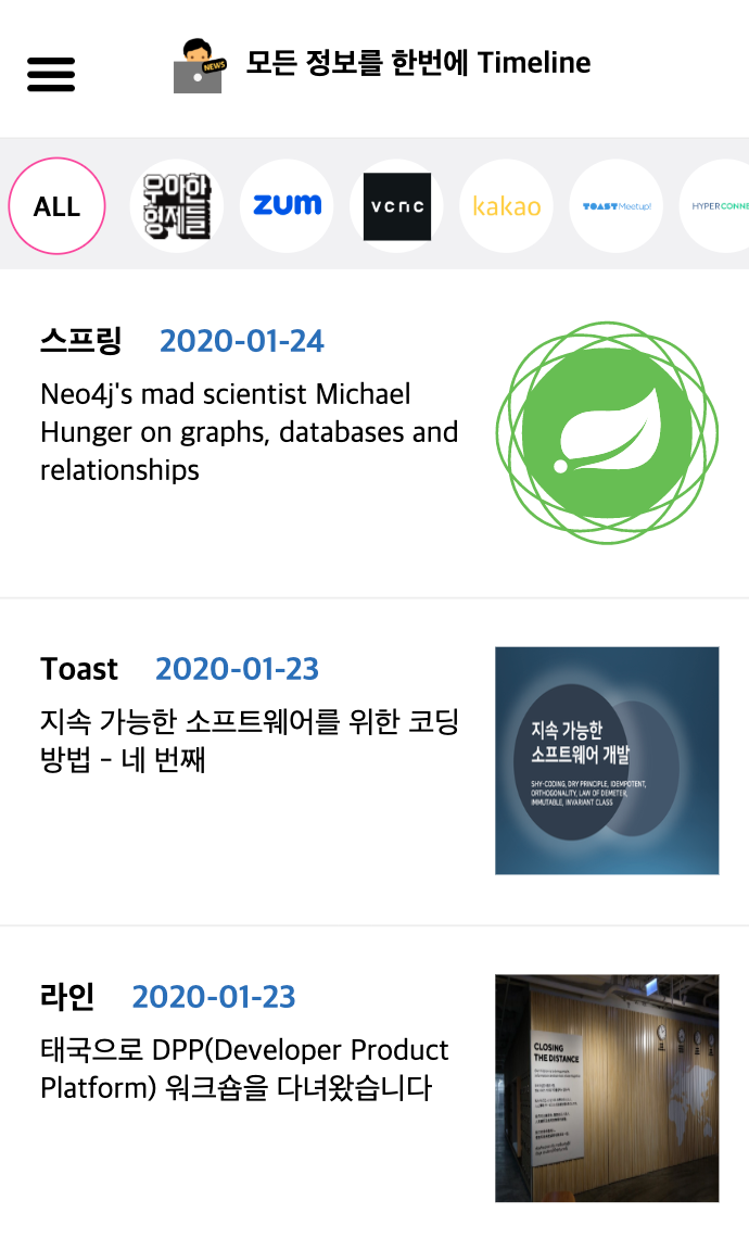 [토이 프로젝트 소개] 개발자 채용, 기술 블로그 정보를 모아주는 TimeLine