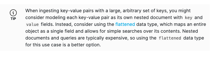 그래서 성능이슈를 해결해보고자 찾던 중 7.3 버전부터 나왔던 flattened type을 찾았고 사용할 수 있을 지 리서치를 해봤다.