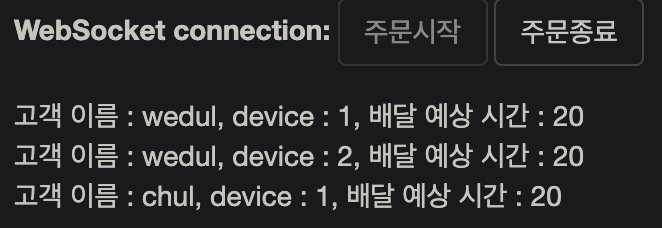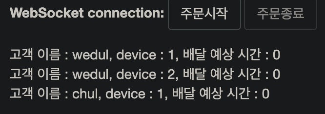 <span>고객 이름 : wedul, device : 2, 배달 예상 시간 : </span> <span class="wedul">0</span>