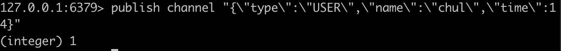 4. worker가 없어서 terminal로 redis의 channel topic에 user별 변경 된 배달 예상시간 정보를 전송한다.