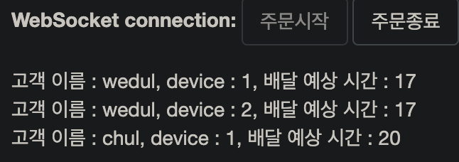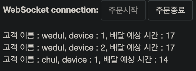 <span>고객 이름 : wedul, device : 2, 배달 예상 시간 : </span> <span class="wedul">0</span>