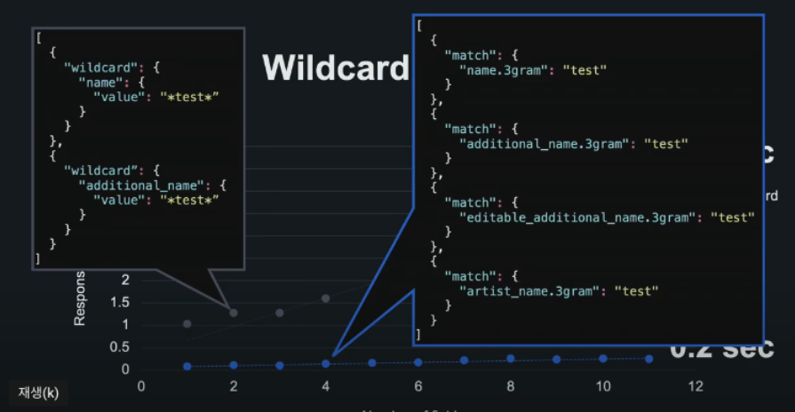 - text-match 쿼리의 결과가 keyword-wildcard보다 성능은 드라마틱하게 좋았고 설계한 쿼리는 방식의 위와 같다.