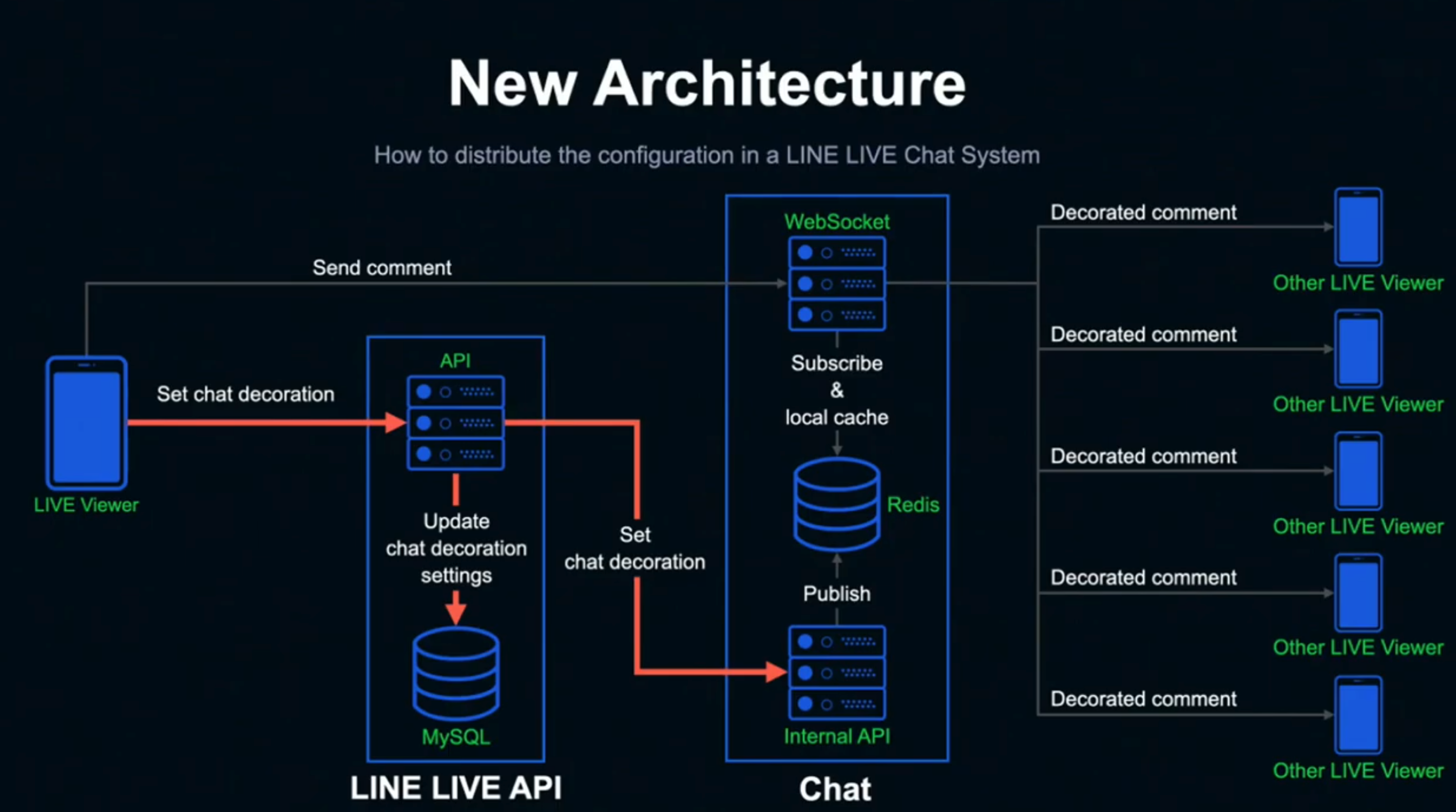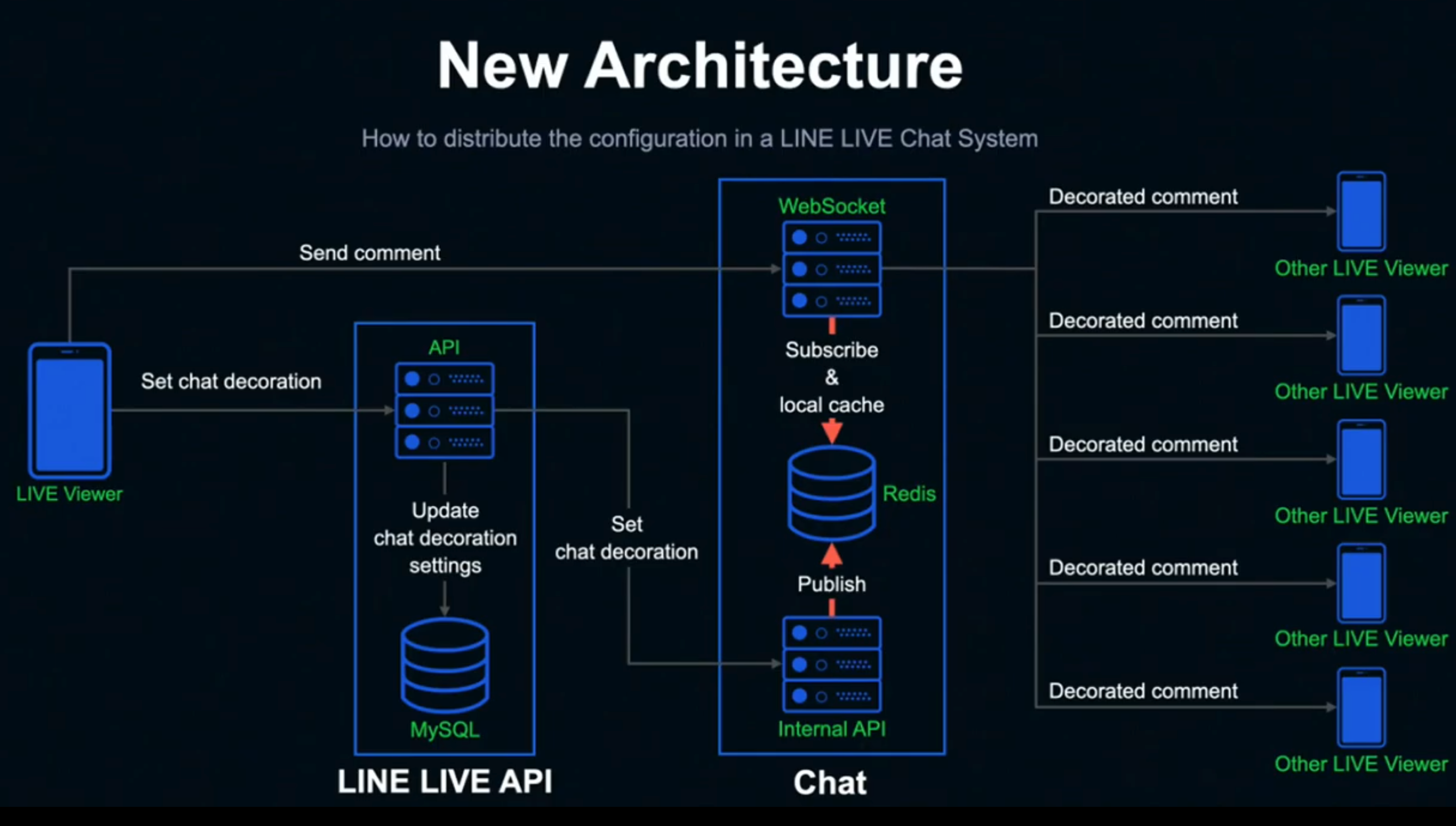 - 사용자가 자신의 chat 데코레이션 기능을 on하면 데이터를 mysql에 저장하고 internal api에 보내는 부분은 기존 시스템과 동일하다.