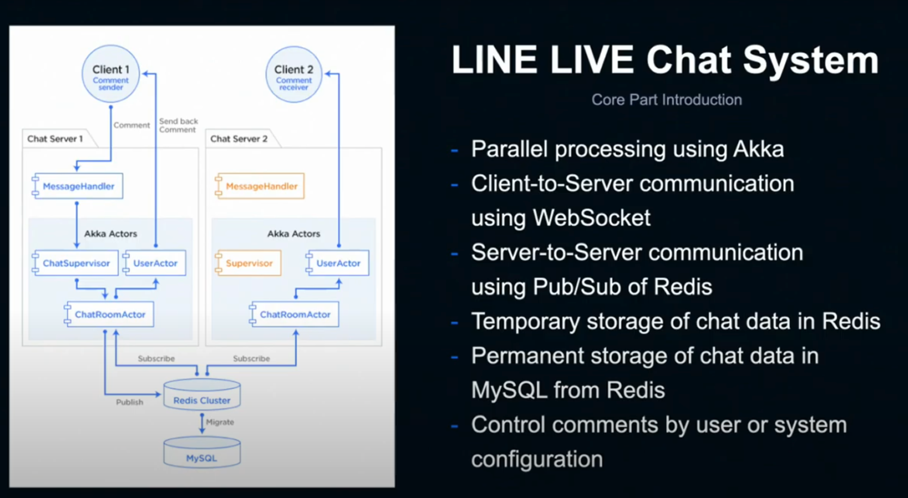 - Line Live chat은 Akka로 동작하며 client와 server사이에는 웹소켓으로 동작