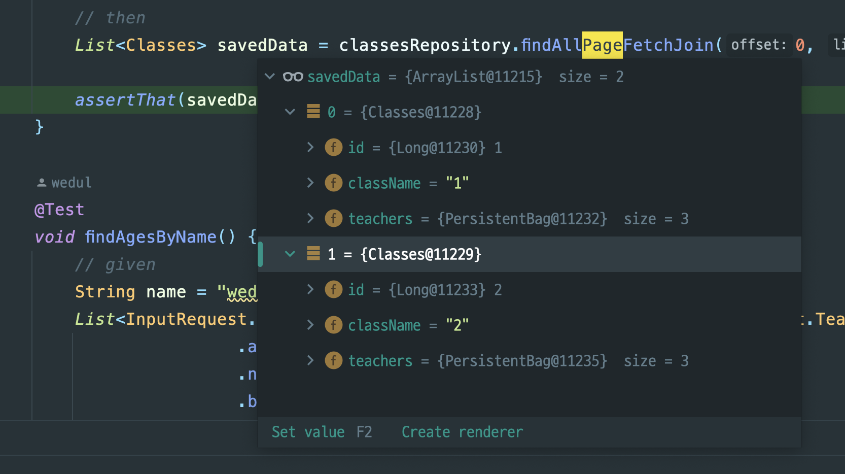 List<Classes> savedData = classesRepository.findAllPageFetchJoin(0, 10);