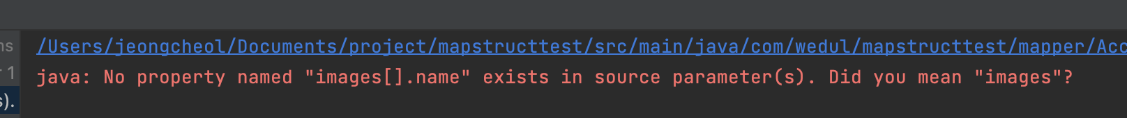 하지만 collection을 사용하는 경우 collection 내부의 값의 이름이 다를경우에는 다르게 해결해줘야한다. 예를 들어 AccountEntity에서 AccountResponse로 값을 매핑한다고 가정하였을 때 내부에 images라는 응답값도 매핑한다고 가정해보자. 아래 처럼 AccountImageResponse와 AccountImageEntity 내부에 필드이름이 서로 다를경우 매핑이 정상적으로 되지 않는다. 아래 코드를 살펴보자.
